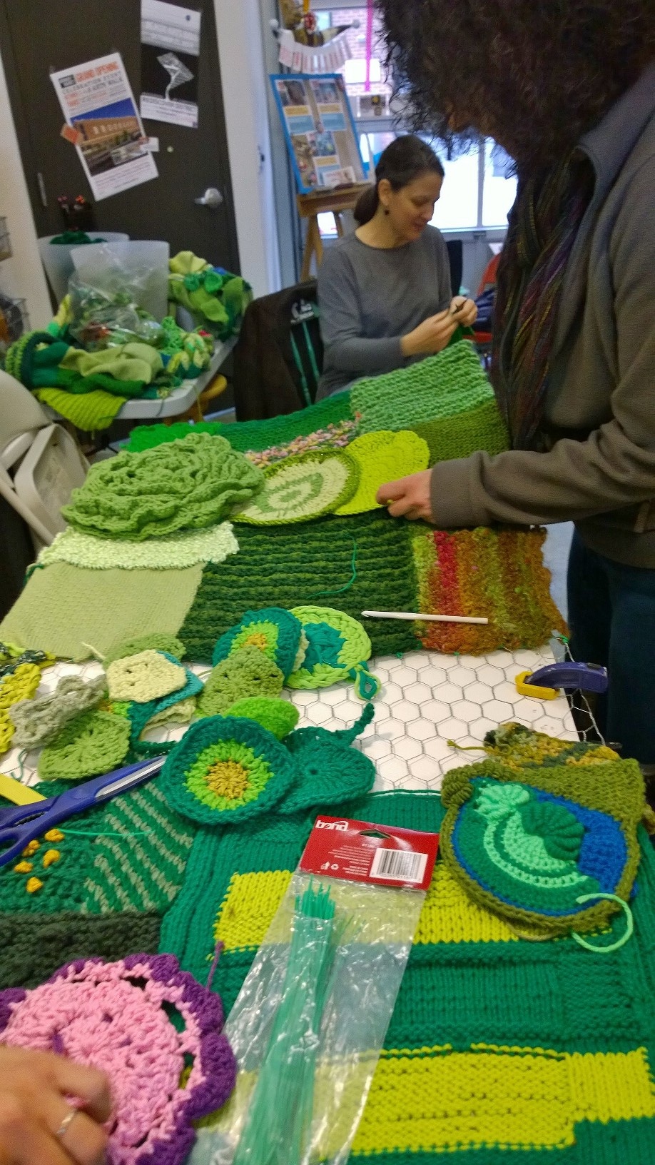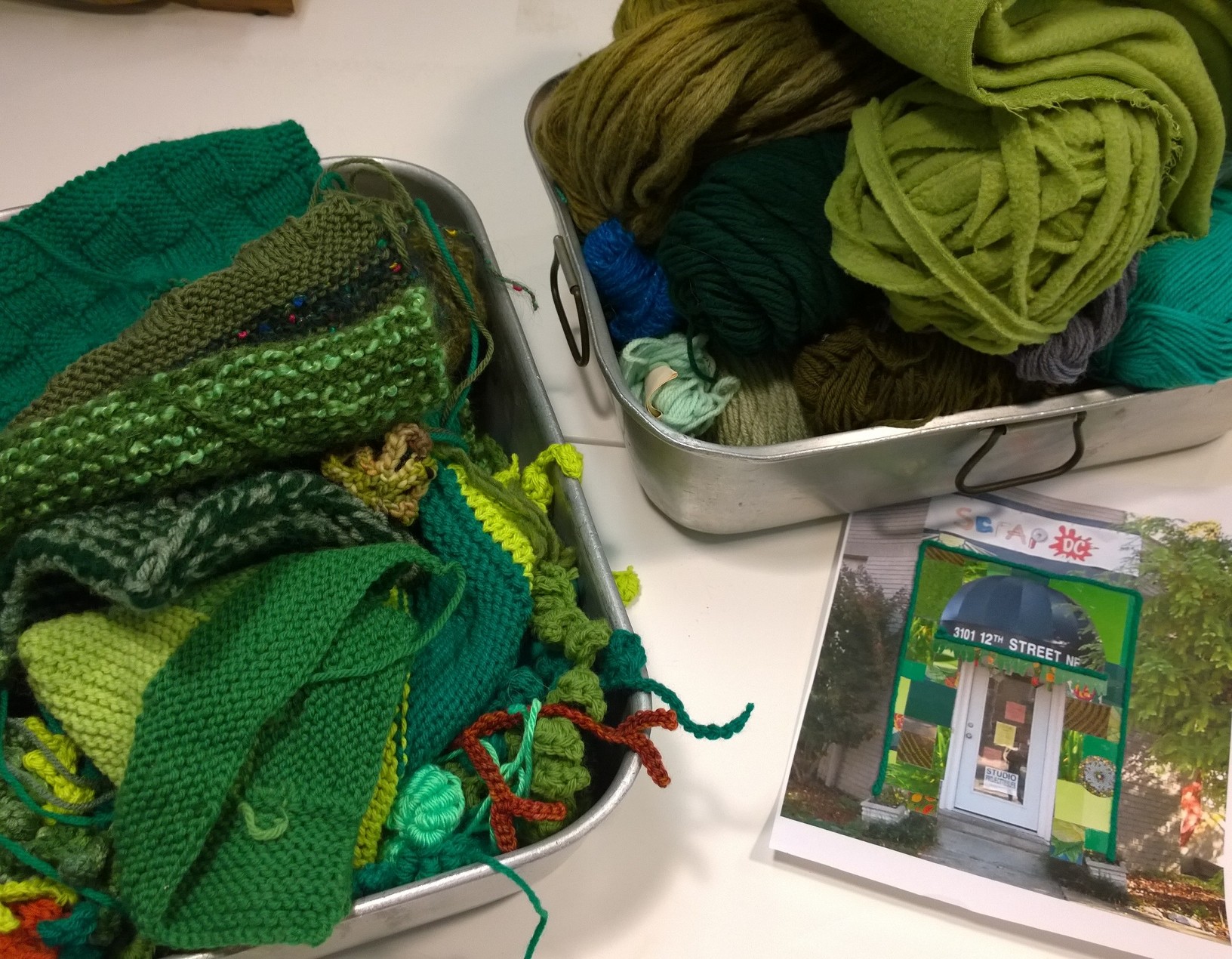 Yarn bombing Scrap DC! In spring 2015, as Brookland Bombshells, we covered with yarn graffiti the entrance door of ScrapDC. The project’s idea was to create a luscious vertical garden to celebrated the awakening of nature after the winter season. Related