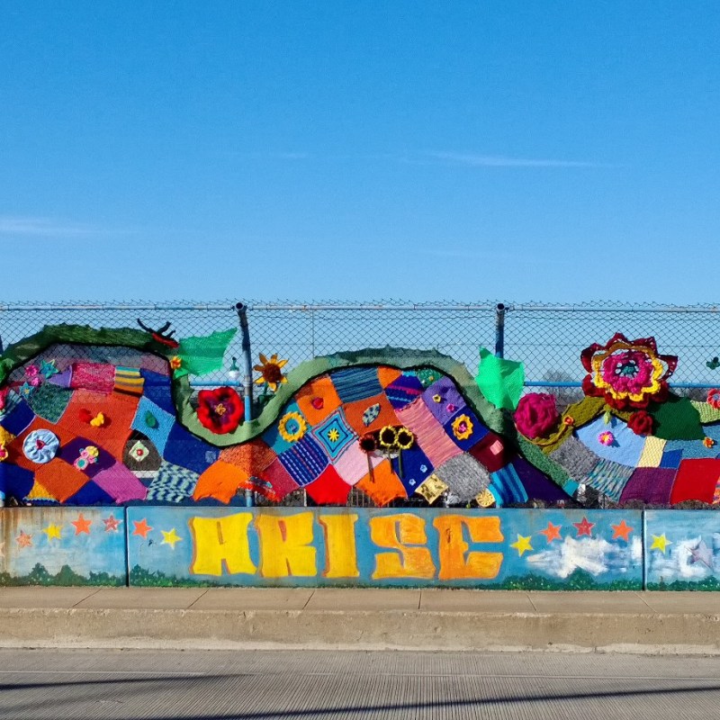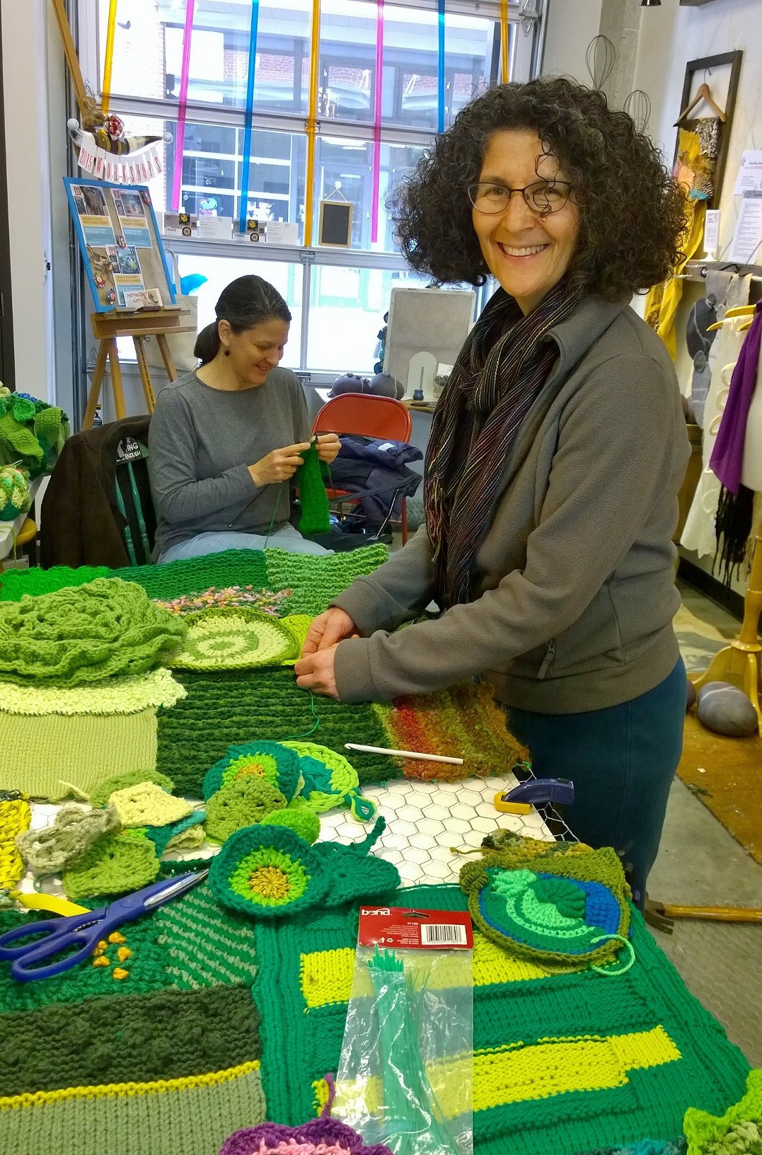 In 2013, with artist Leda Black, I founded and lead the Brookland Bombshells, a community yarnbombing group in the Brookland neighborhood of Washington DC. During the time I was at studio 15 of the Arts Walk we used to meet regularly and to knit and crochet together. Our aim was to create amazing works of yarn while enriching personal relationships and promoting participation in community life.